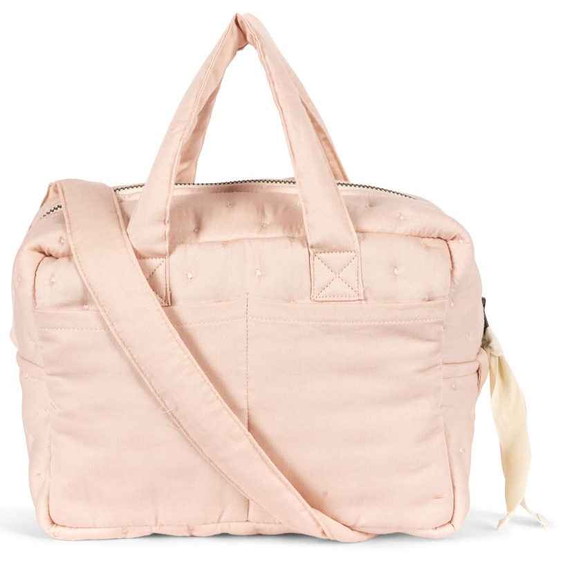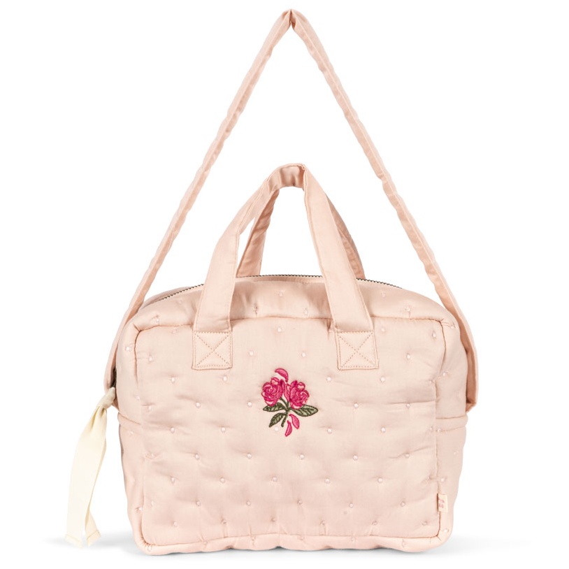 Poznaj Doll Bag – Cameo Rose od Konges Sløjd – piękną, pikowaną torbę dla lalek, stworzoną z myślą o małych opiekunach. Delikatny pudrowy odcień różu oraz haft różyczki sprawiają, że torba wygląda niezwykle uroczo i stylowo, a jednocześnie jest praktyczna i pojemna.